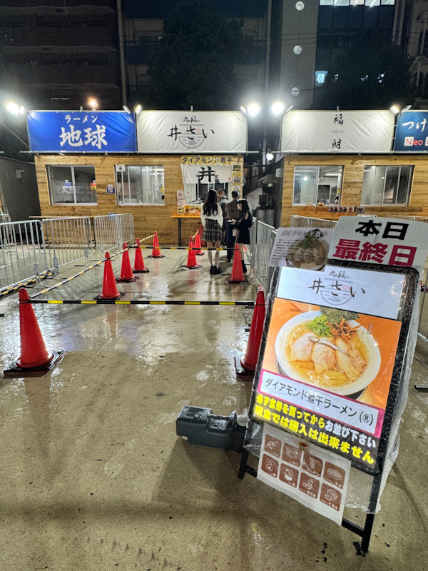 九段井さい Kudanisai is a Kudanshita-based niboshi specialist now showing at Dai Tsukemen Haku 2025, the annual “new creations” ramen showcase in Shinjuku’s Okubo Park. The shop is a relatively new Tokyo entrant, opened in April 2024 near Kudanshita and Iidabashi, led by the team behind the Sapporo-born “Isai” brand known for assertive dried-fish profiles. For the festival run, they are debuting a one-off concept that pivots from their usual thick silver niboshi toward a rethought extraction dubbed a “diamond” niboshi style, positioned as a first for the shop. Expect craftsmanship, restraint, and technique-forward clarity rather than a copy of the regular shop bowl.