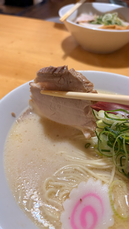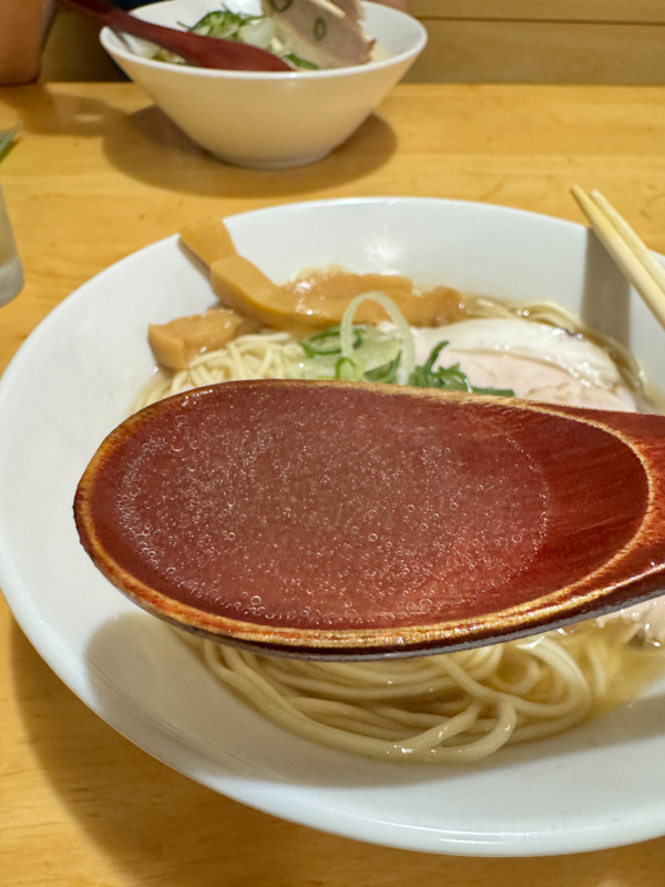 The noodles presented as pale yellow, medium-thin straight strands. Structurally, they possessed a commendable firm and snappy core, providing a requisite resistance. The mouthfeel was complemented by a slightly doughy exterior that tended to adhere to the teeth, adding textural dimensions to the otherwise clean bite. On the palate, the noodles offered a pleasant earthy wheat presence, while the kansui influence remained appropriately subdued, allowing the grain’s natural profile to lead.