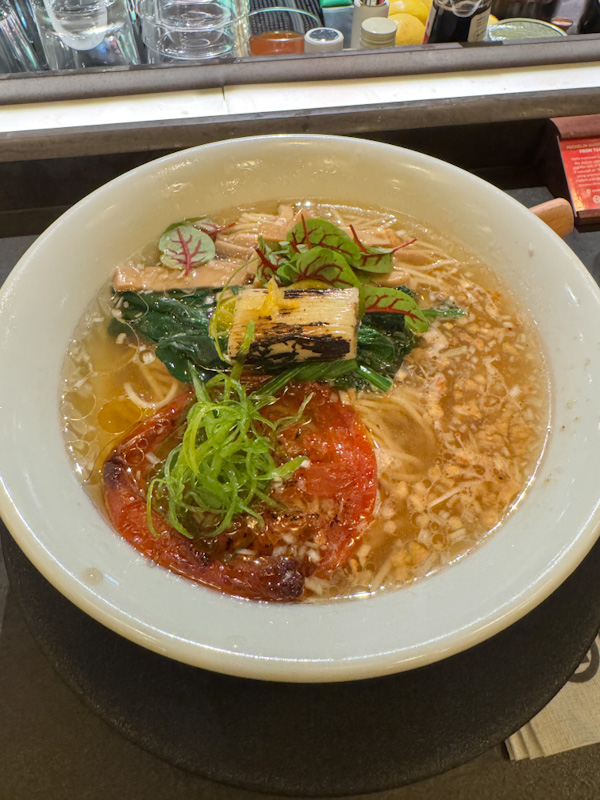 This Yuzu Shio Ramen is a thoughtfully constructed vegan bowl with a clear focus on citrus layering and balance. The soup remains the highlight, showing more complexity than expected for a Shio, while the toppings provide structure and interest throughout the meal. The noodle performs reliably but does not stand out, and the tomato chashu struggles to assert itself as a true hero element. Overall, it is a competent and enjoyable interpretation that demonstrates solid technical understanding, even if a few refinements could push it further.