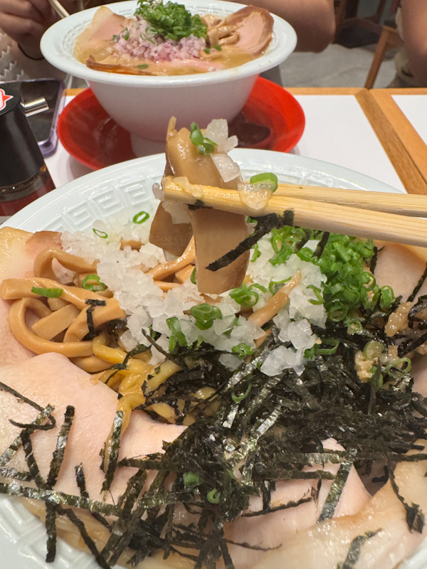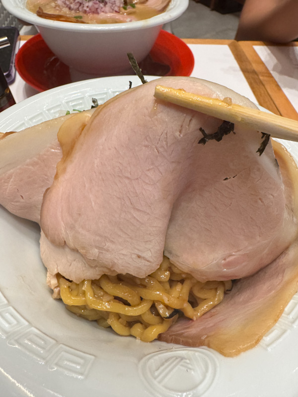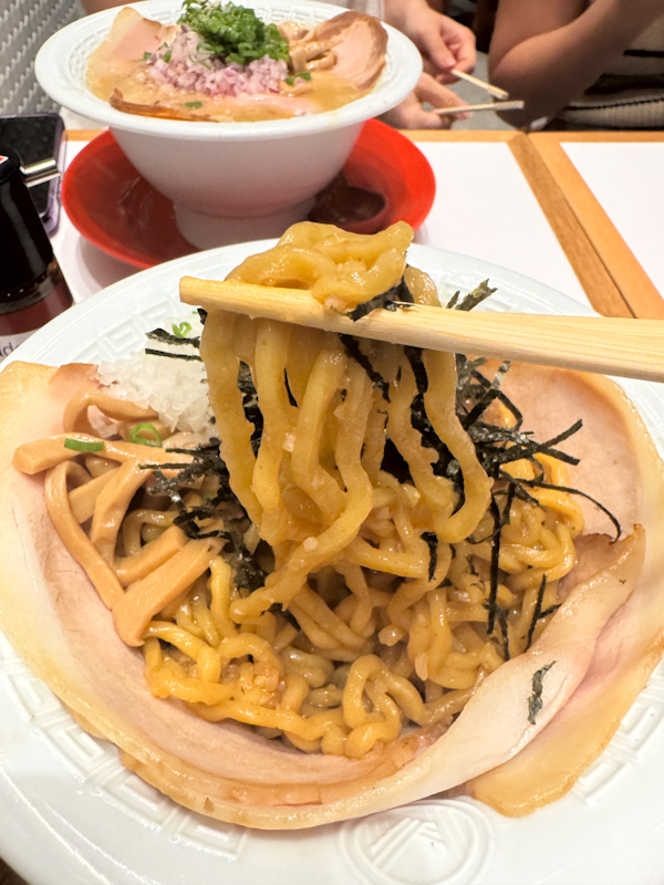 This bowl features a medium-thin, slightly wavy noodle — different from the tsukemen, but equally well considered. It’s served al dente, with a good snappy bite that stays resilient from start to finish.