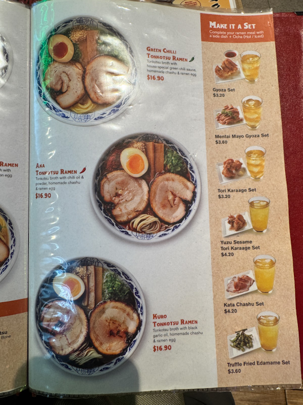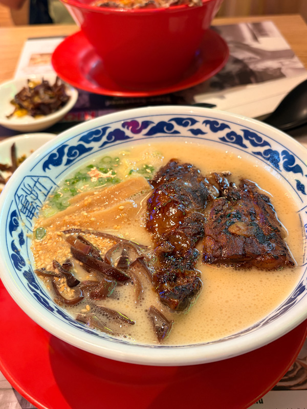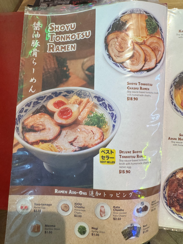 The tamago (egg) and other toppings in this ramen are the same as those found in their other dishes.