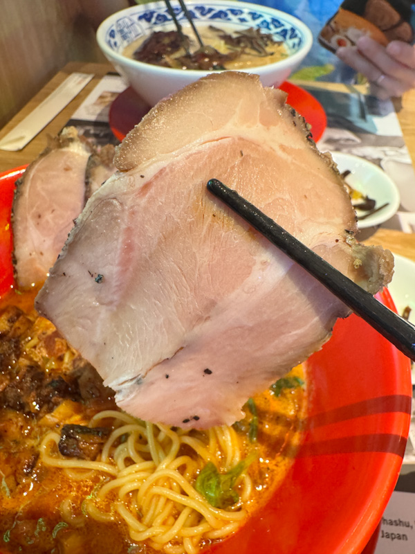 Their salt-based Tonkotsu broth is creamy, rich, and notably thicker compared to other Tonkotsu ramen varieties. It lacks the intense porky flavor that often comes with long hours of boiling, but instead offers a hint of ginger in its aftertaste. As the broth cools, you can see emulsified fats forming on the surface. While I enjoyed it overall, I found that the flavor started to become flat towards the end of the meal.