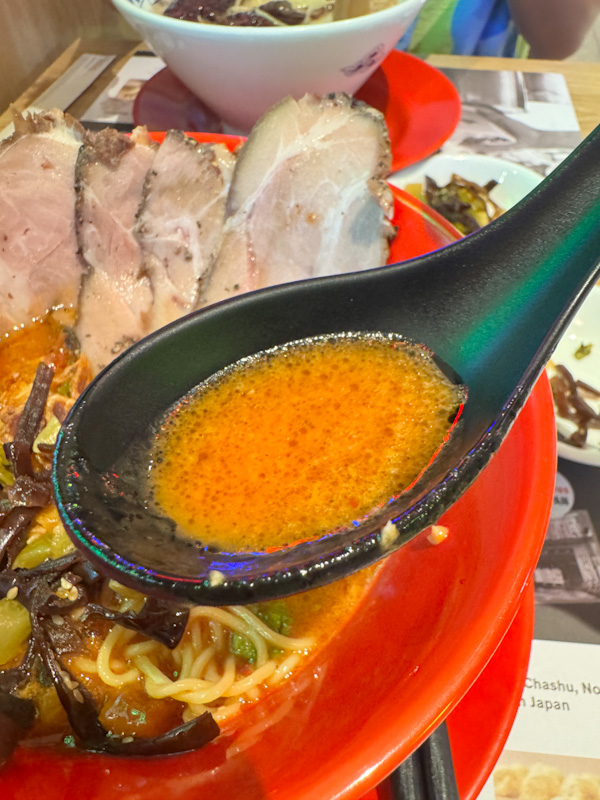 In this particular ramen, they use a Shoyu mix for the broth, which takes it up a notch compared to their signature salt-based version. The addition of Shoyu adds more depth and complexity to the taste, enhancing the overall flavor experience.