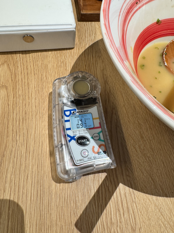 - A unique inclusion is the pickled tomato, which exhibits a funky, fermented profile. Its combination of sour and sweet notes, finished with a subtle, fleeting bitterness, serves as an effective palate cleanser.