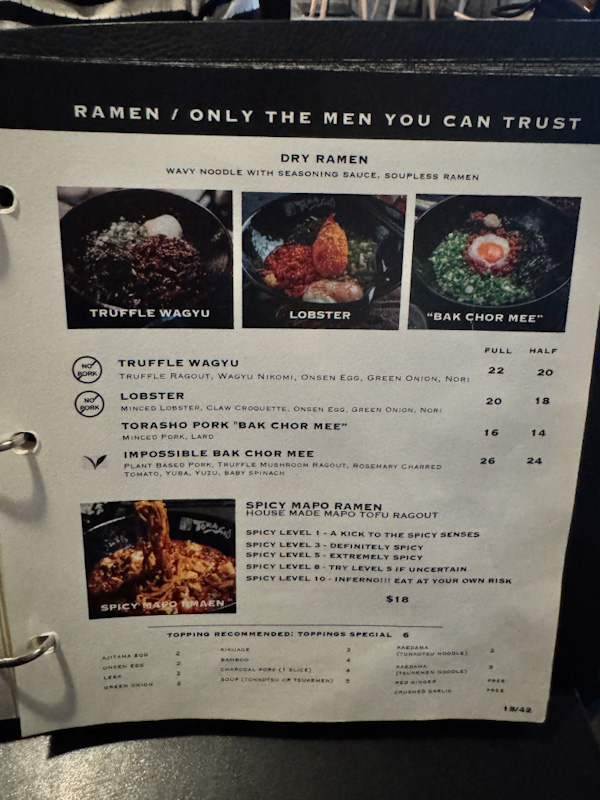 Technically, the noodle foundation is strong. Texturally, the bowl is coherent. Conceptually, lobster dry ramen sounds compelling.